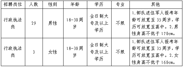 2024-08-01 15:56:41阅读()中国雄安为扎实做好雄安新区容东片区和大河片区城市管理工作,根据目前岗位空缺情况及工作需要,特面向社会招聘综合执法辅助人员32名,现将有关事项公告如下:
