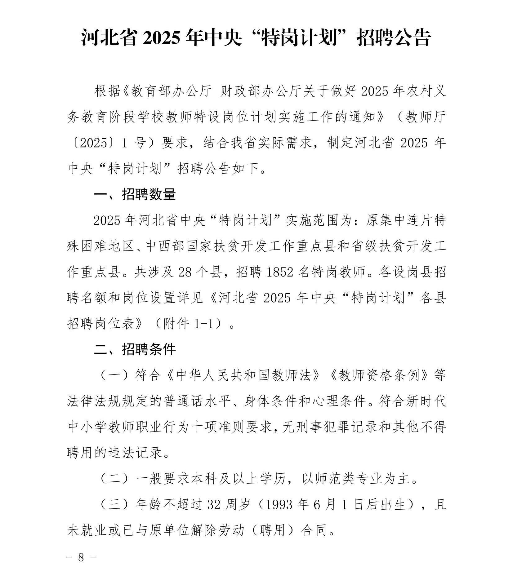 / 2025年河北省中央"特岗计划"招聘公告