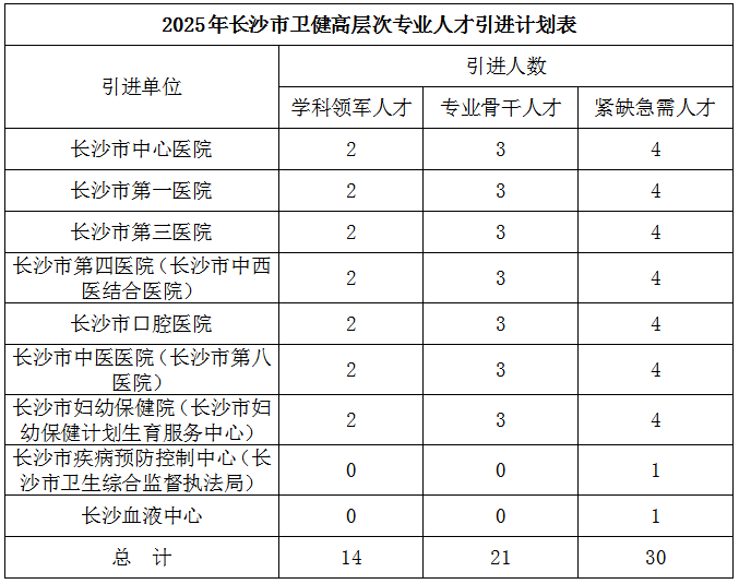 2025-06-09 18:14:38阅读()长沙市人力资源和社会保障局为进一步加强我市卫生健康系统人才队伍建设,优化卫健人才队伍结构,根据《长沙市卫健高层次专业人才引进实施办法(试行)》(长人才办发〔2022〕24号)精神,经市委机构编制委员会办公室、市人力资源和社会保障局批准,拟面向社会引进一批高层次专业人才。现将有关事项公告如下: