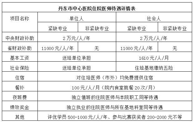 3.医院为学员培训提供多方面保障,包括国家、省、医院、科室补助、夜班费等,且与面向社会招收学员签署劳动派遣合同,缴纳五险,待遇详见下表。