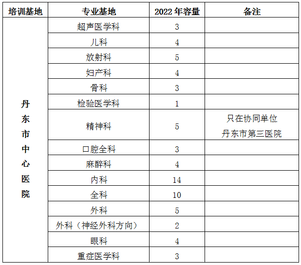 2022年丹东市中心医院住院医师规范化培训招生简章