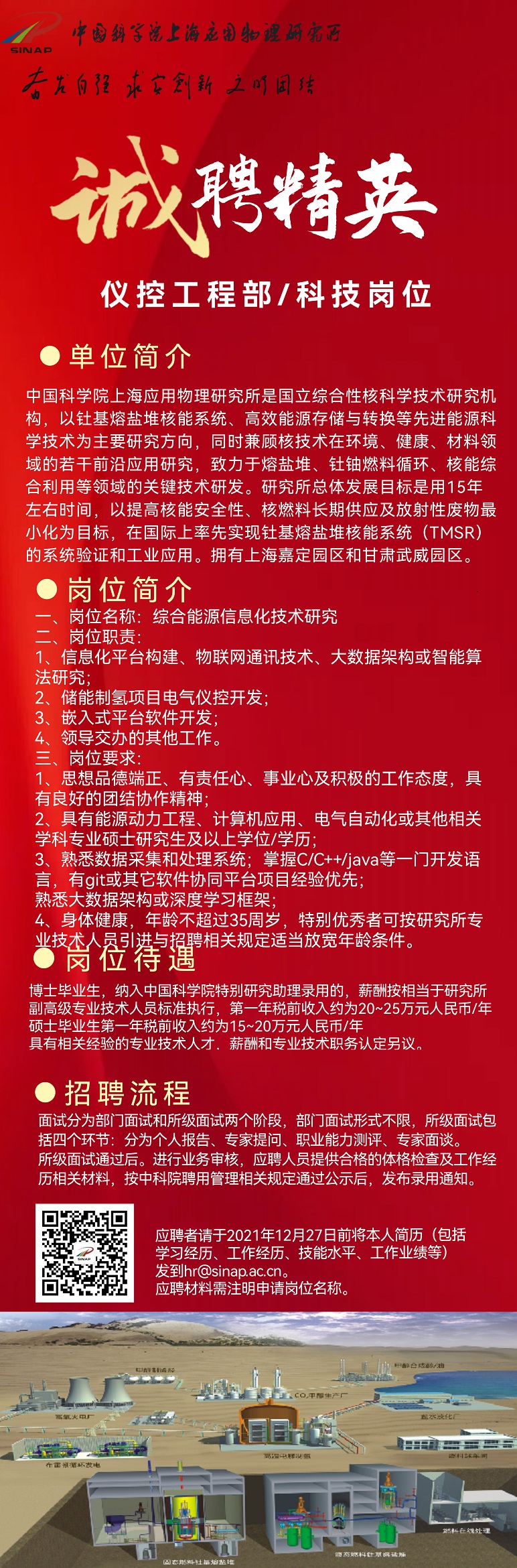 / 2021年上海应物所仪控工程技术部岗位招聘启事