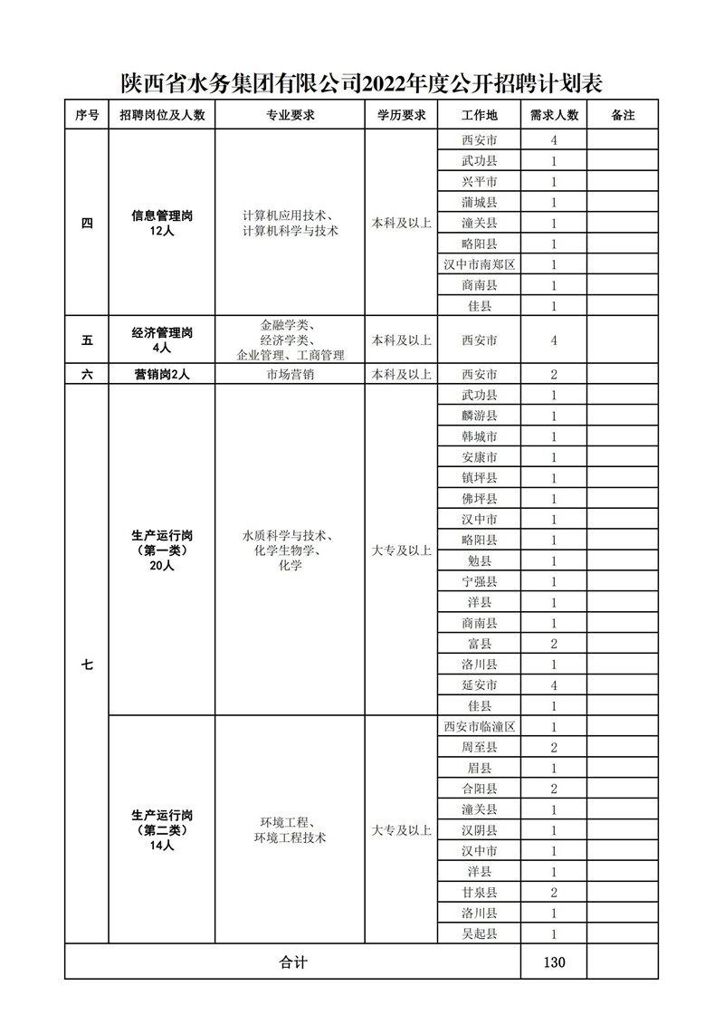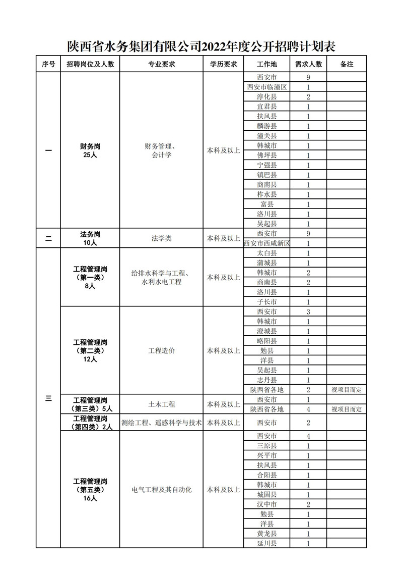 附件:《陕西省水务集团有限公司2022年度公开招聘计划表》