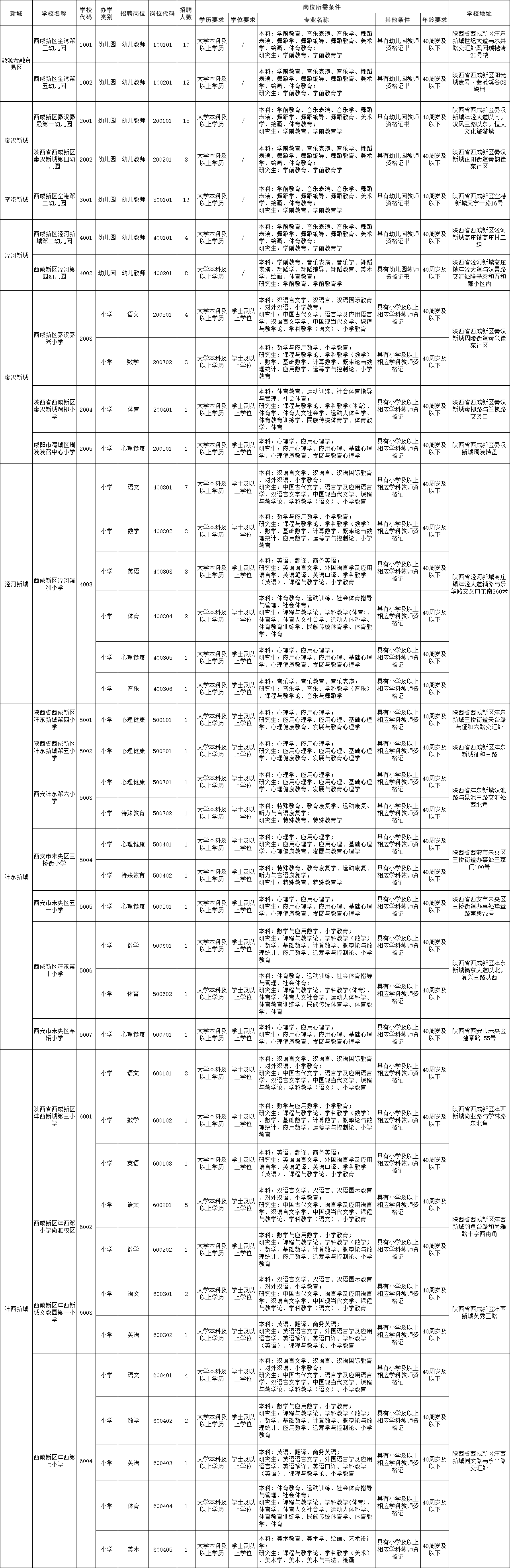 西咸新区2025年教育系统公开招聘岗位需求一览表(教师岗位190人)