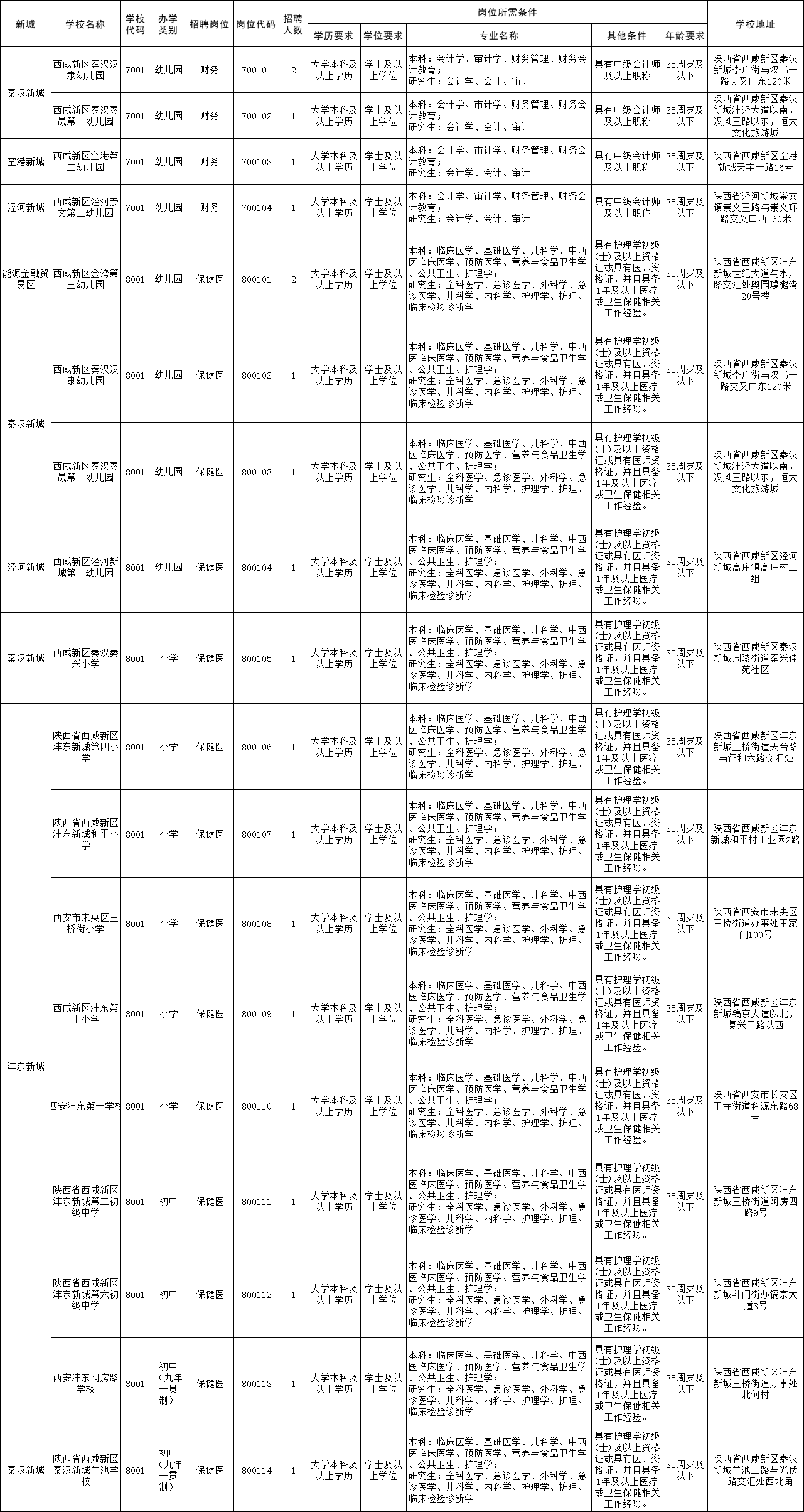 西咸新区2025年教育系统公开招聘岗位需求一览表(财务、保健医岗位20人)