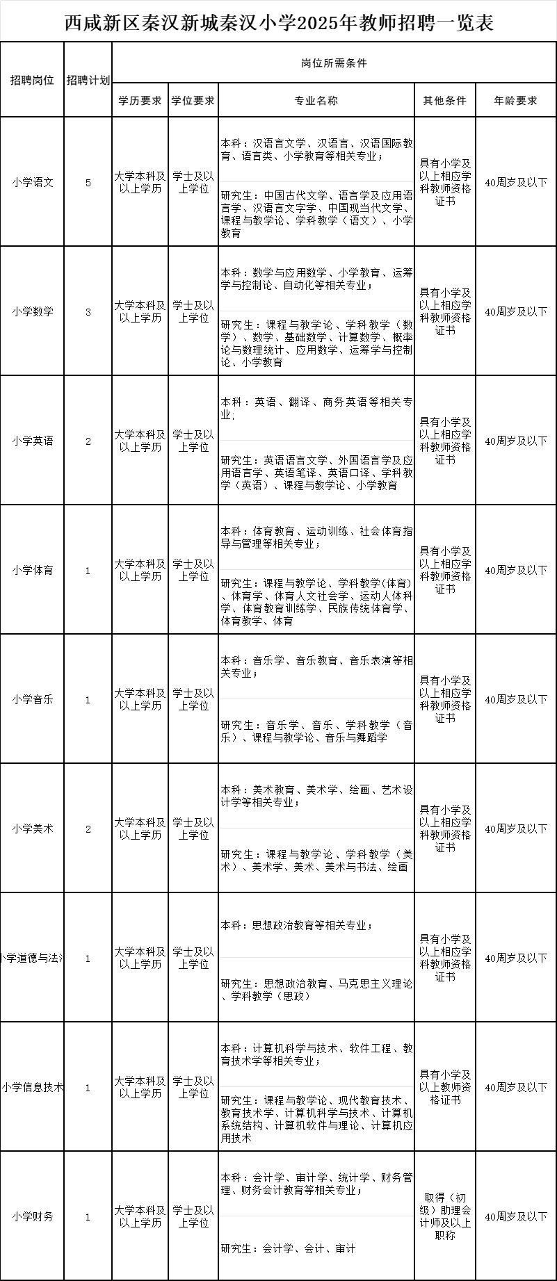 2025-04-02 10:27:22阅读()陕西省西咸新区开发建设管理委员会近日,西咸新区秦汉新城秦汉小学、西咸新区泾河第七小学、西咸新区泾河新城第四小学分别发布招聘公告,具体如下。