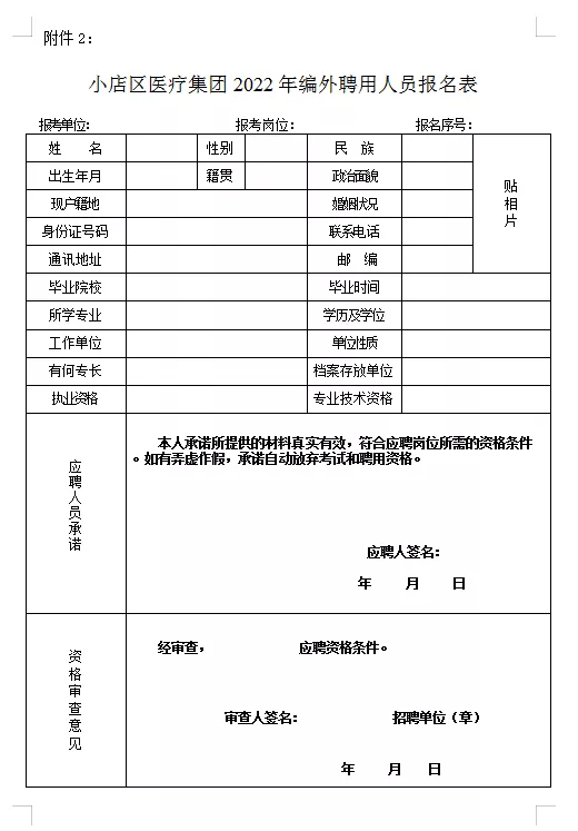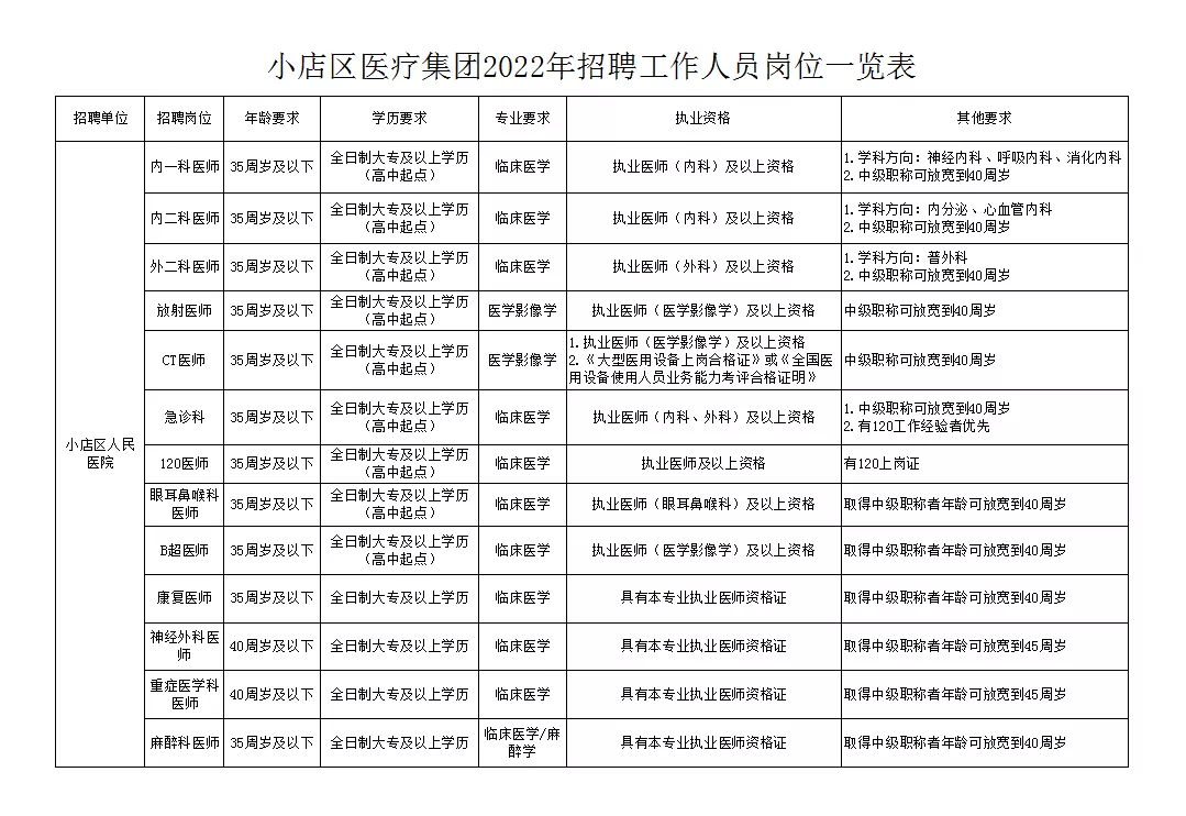 附件1:小店区医疗集团2022年招聘工作人员岗位一览表