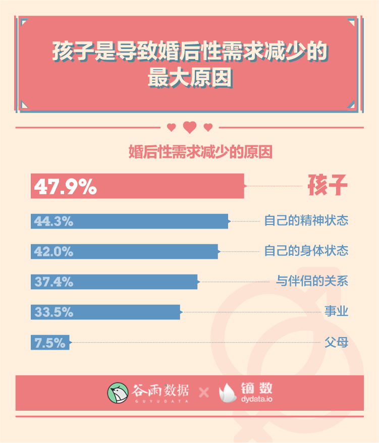 我们的调查显示,在所有导致婚后性需求减少的原因中,“孩子”超越了“精神状态”、“身体状态”、“伴侣关系”等,成为性生活的“头号杀手”。