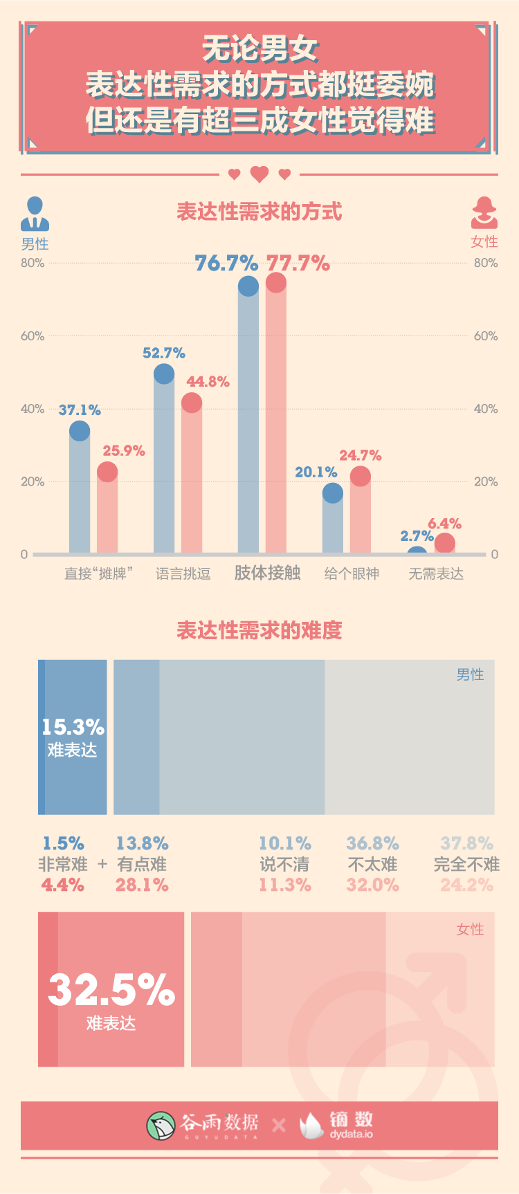 有32.5%女性和15.3%男性都觉得难以向伴侣表达性需求。