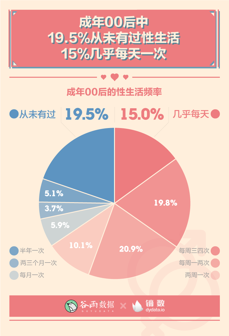 调查显示,有80.5%的成年00后已经有过性生活,其中15%的性生活频率达到每天一次。