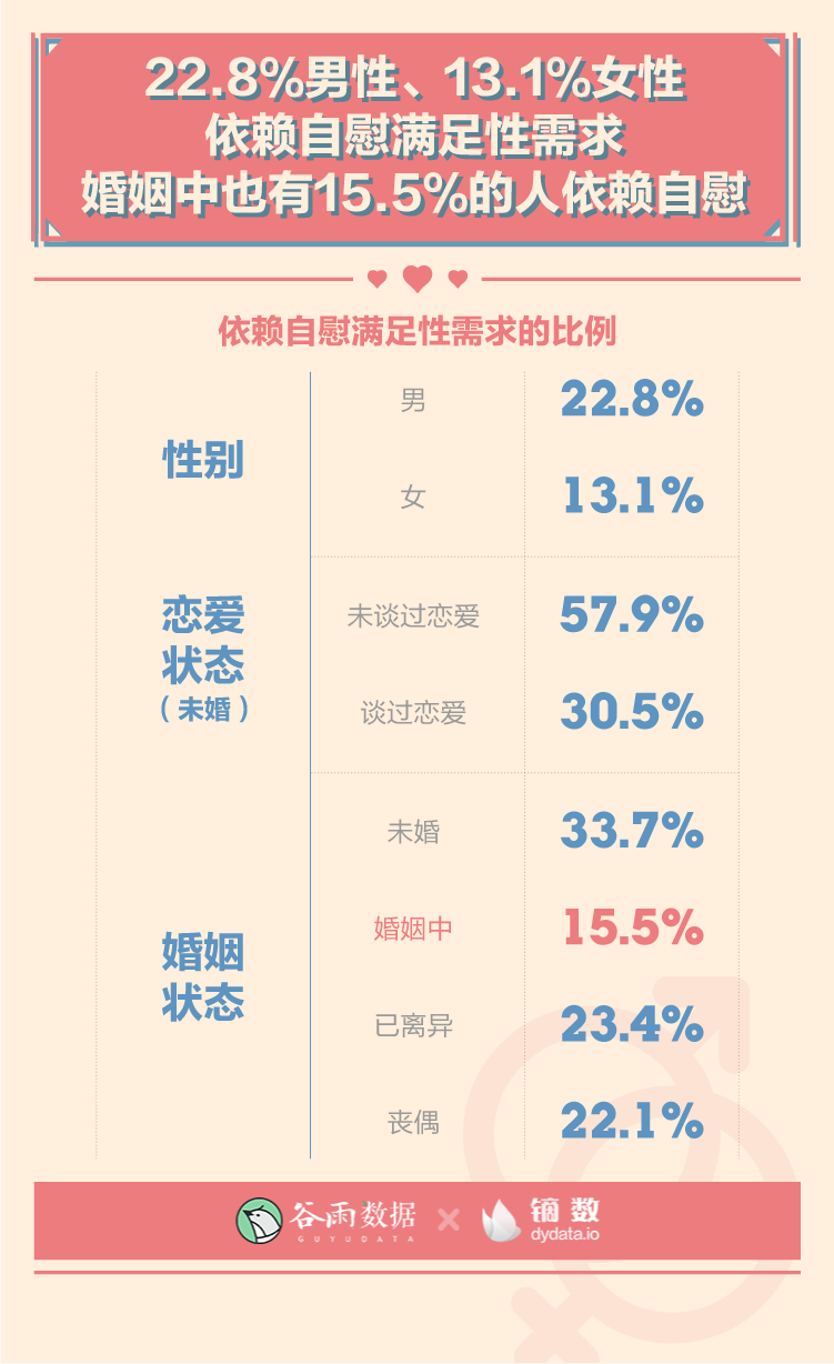 22.8%的男性、13.1%的女性当前依赖自慰满足性需求。