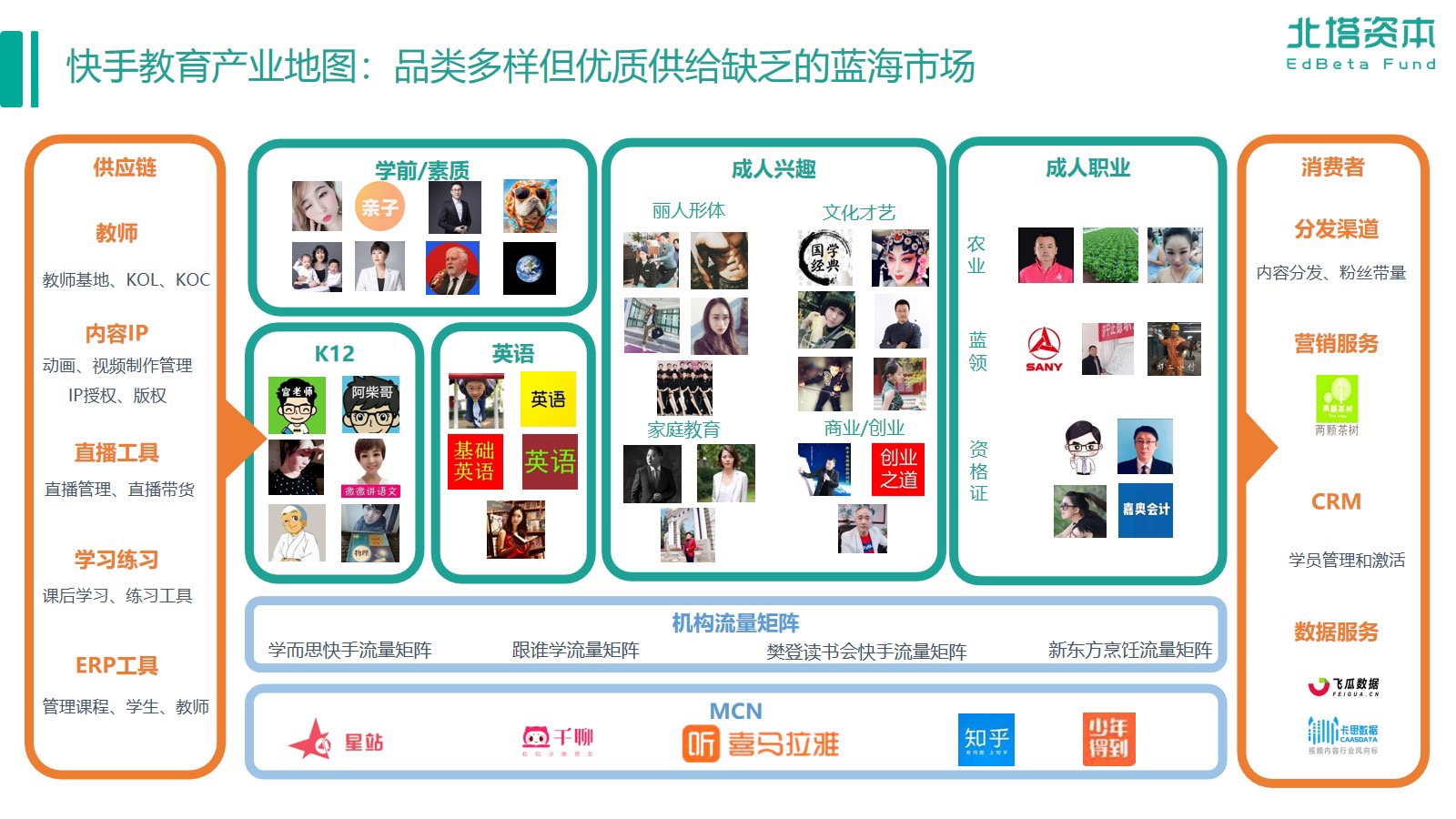 短视频流量和内容创作工具赋能,让传统教育机构没能满足的低价、小众学习需求,在斜杠青年们兴起后成为了可能。对于泛娱乐教育内容来说,平台的定位并不一定是自主研发,低价化、娱乐化、多元化的连接平台也有存在必然性,目前快手已实现了从发现内容到线上授课的基本闭环。