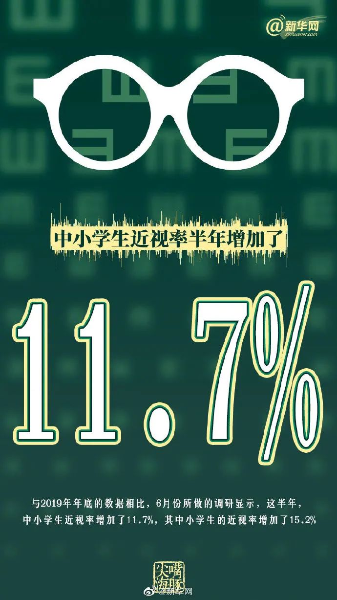 近期,教育部发布了中小学生视力情况抽样调查,结果显示,与2019年同期相比,9个省的中小学生近视率增加了11.7%,小学生的近视率增加最多,达到了15.2%。