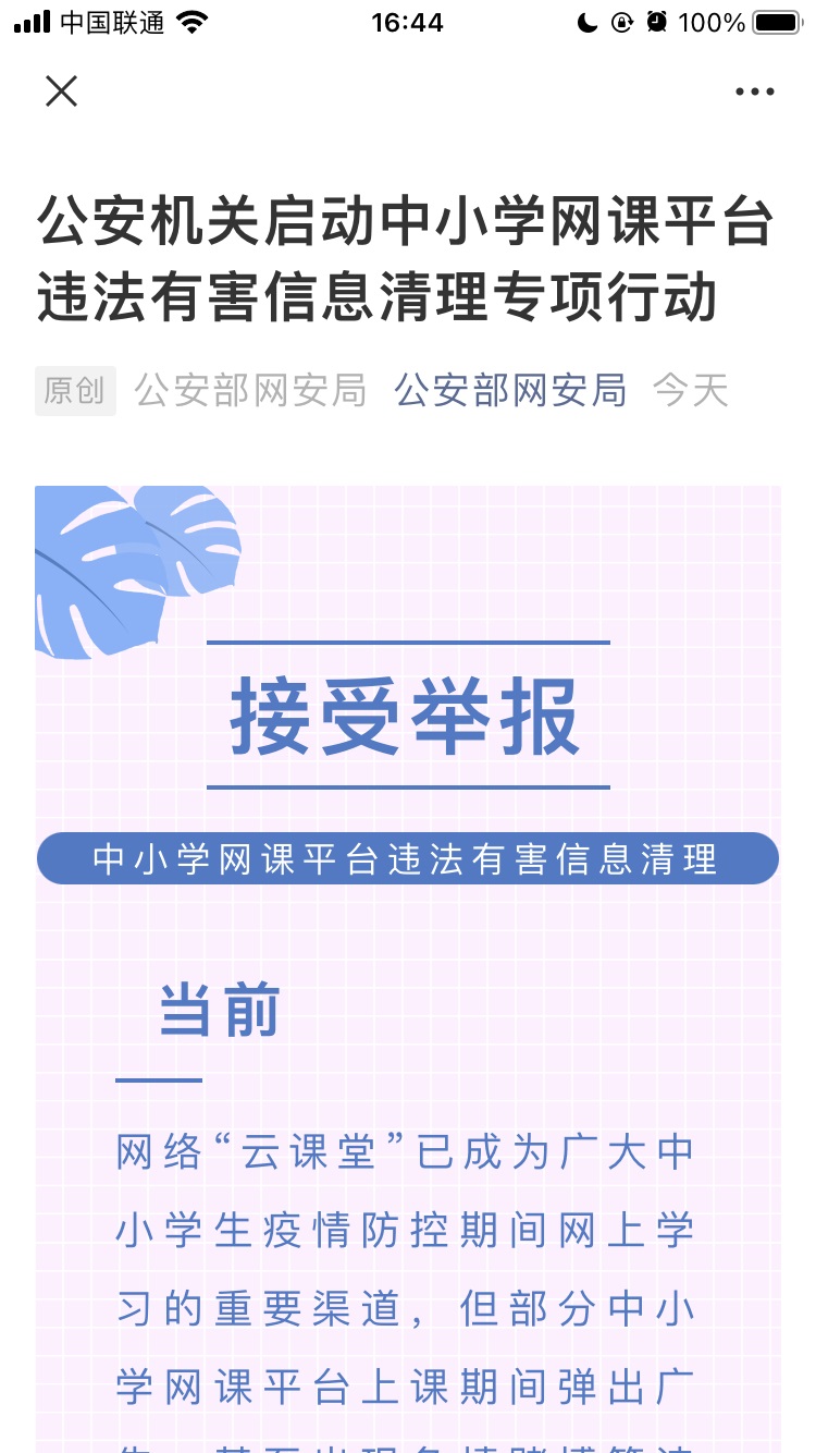 公安部网安局:网课平台传播含色情、赌博等信息可举报